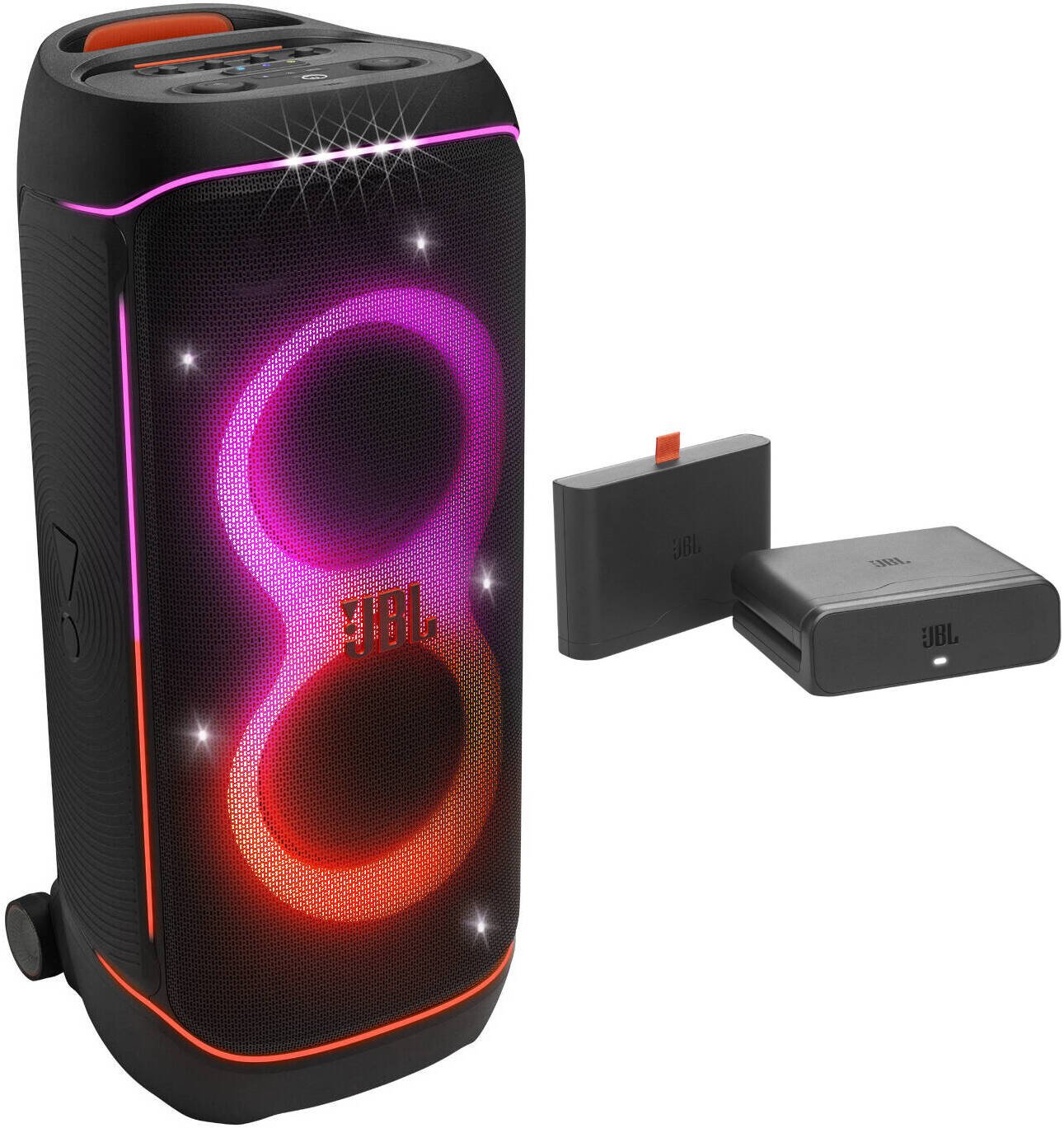 Its rugged build, integrated wheels, and strong handle system make it easier to transport despite its large size. Combined with JBL’s signature Pro Sound and dynamic LED lighting that syncs with the music, the PartyBox 720 creates a true party atmosphere anywhere.